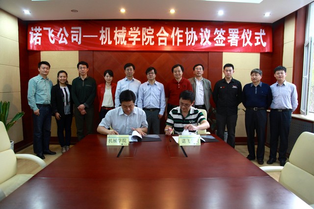 2014年4月25日下午,北京诺飞金属材料有限责任公司(以下简称“诺飞公司”)一行到访北理工机械与车辆学院,就捐赠大学生方程式赛车科技创新活动事宜达成一致,签署了《“诺飞方程式赛车基金”捐赠协议书》。本年度诺飞公司将以资金的形式进行捐助,用于方程式赛车队和纯电动方程式赛车队开展技术研发、学术交流和国内参赛活动。诺飞公司主要领导和北理工教育基金会办公室、机械与车辆学院的相关师生共同出席了捐赠仪式并进行座谈。