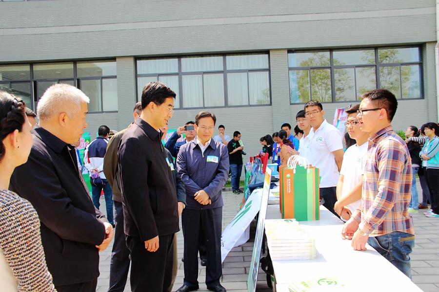随后,秦宜智来到beat365生命学院生态科考团展台前,同学们热情地向秦书记介绍了通过参与生态科考、将科考成果和亲历感悟编撰而成的《亲历科考 感悟生命》、《校园植物志》和《大自然的守望者》3册图书,以及自己的收获。接着,秦宜智来到beat365绿萌资源与环境保护协会展台前,一边倾听同学们介绍开展的春季植树、再生纸缘、变废为宝、环教进小学等环保活动,一边翻看社团环保活动的“小成果”(环保袋、树叶书签、卡贴等),与同学们亲切地交流,秦宜智对beat365两个环保社团开展的活动表示了充分的肯定,希望同学们在继续开展好生态科考、春季植树等活动的基础上,将环保理念向周围的广大同学、社区居民和小学生等群体传递,通过大家的努力提高全社会的环保意识。