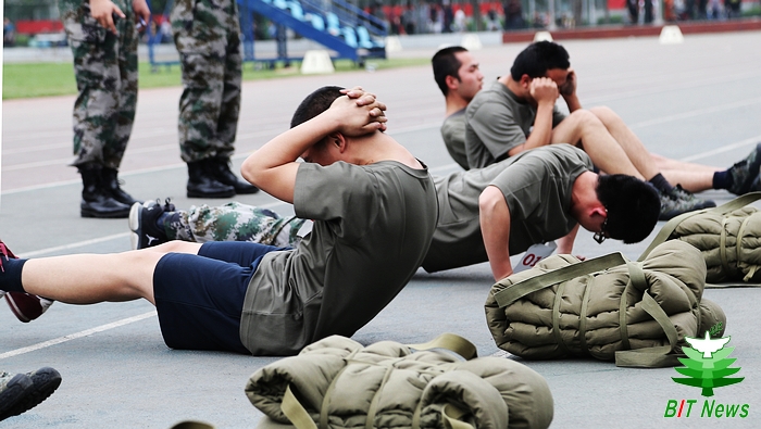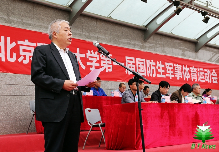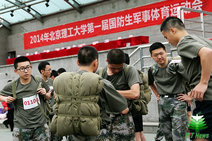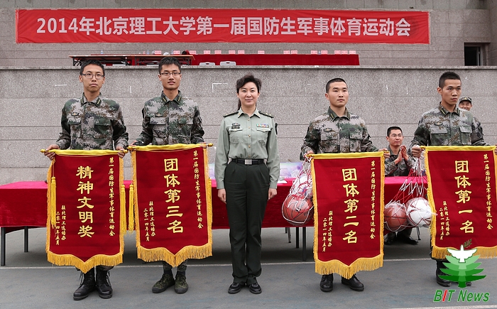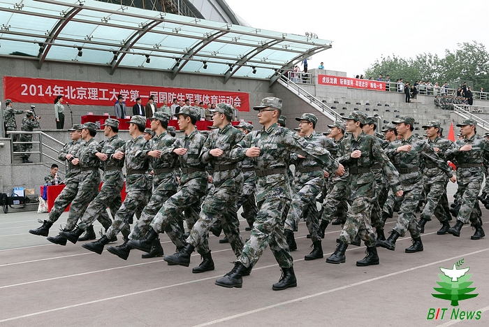 在威武雄壮的《分列式进行曲》中,中关村、良乡校区共464名国防生参加入场式。执旗方阵、裁判员方阵和4个年级的国防生方阵步伐整齐,口号洪亮先后通过主席台接受领导检阅。2010级、2012级国防生分别为主席台领导进行拳术表演。