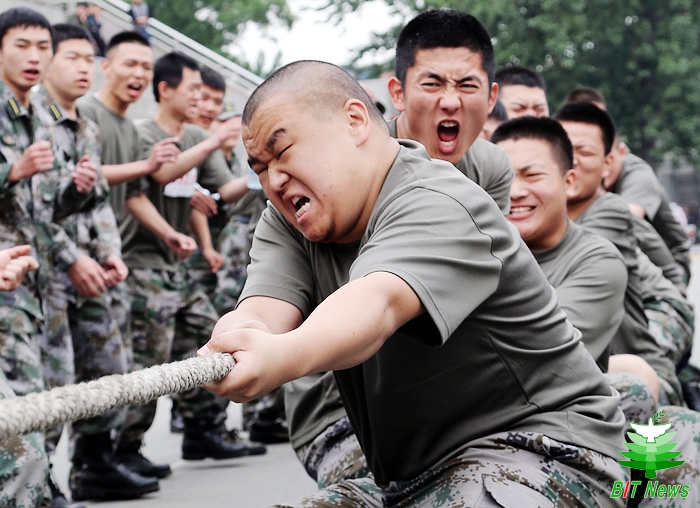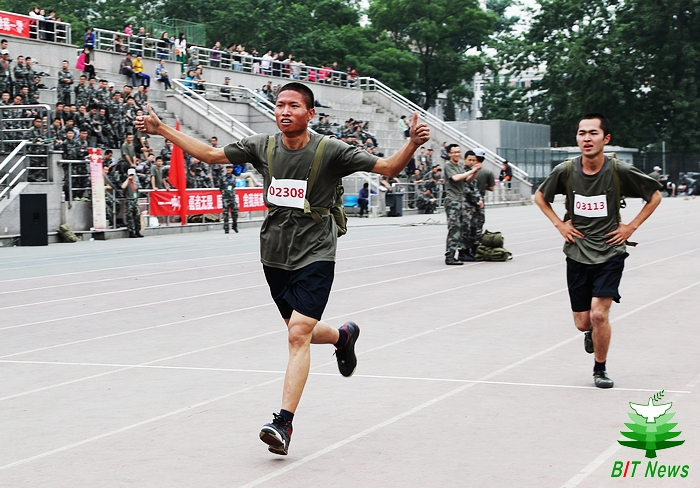 在分设的6大类15项竞技项目中,具有浓厚部队特色的“铁人三项”和“万米接力”是本届运动会亮点。“铁人三项”要求参赛人员在完成一定数量的仰卧起坐和俯卧撑后,打背包跑完3公里,这既是对平日训练科目的检验,也是对参赛选手体力耐力的大考验。“万米接力”要求每个年级出25名选手,其中必须包含2名女生,这不仅是对年级整体训练水平的考查,也是对指挥员临场排兵布阵的考验。
