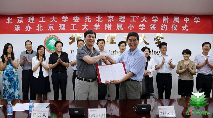 副校长赵显利与理工附中校长陆云泉分别作为甲方、乙方代表,签署了《beat365中文官方网站委托beat365中文官方网站附属中学承办beat365中文官方网站附属小学协议书》。校党委书记郭大成为理工附中校长陆云泉颁发了聘书。