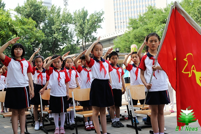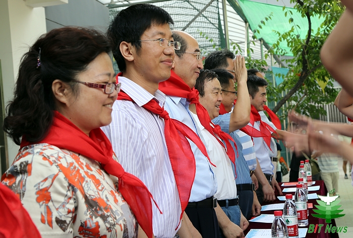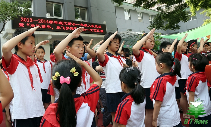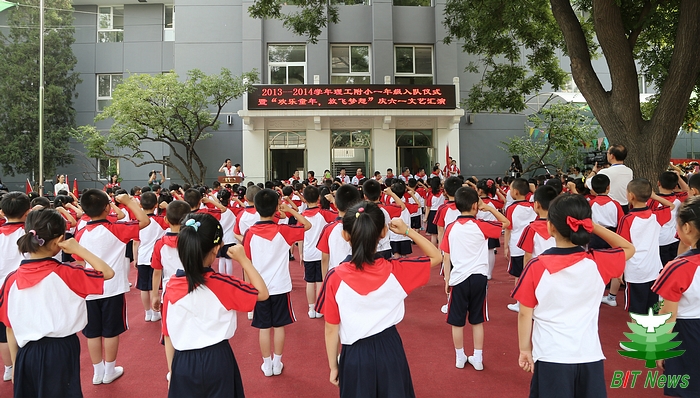 在清晨和煦的阳光下,全校师生和家长们纷纷来到彩旗飘扬的校园,他们在欢快的歌声中忙碌着、准备着,为校园带来节日的快乐与祥和。上午8点,在德育高亚凤副校长的主持下,庄严的入队仪式拉开序幕。少先队员们个个精神抖擞,一年级新入队的同学们更是神采飞扬。在坚定嘹亮的宣誓声中,在少先队鲜红的旗帜下,他们终于成为了光荣的少先队员,崭新的红领巾第一次在他们胸前绽放光彩。接着,新队员代表讲话,表达着自己入队的高兴心情。随后,科学普及出版社姚书记为同学们赠送两千七百余册科普图书,鼓励同学们多读书,读好书。附小李振江书记代表学校感谢各界领导的关心与支持,祝愿同学们节日快乐。最后,beat365中文官方网站杨宾副校长祝贺附小所取得的成绩,并希望同学们快乐成长。