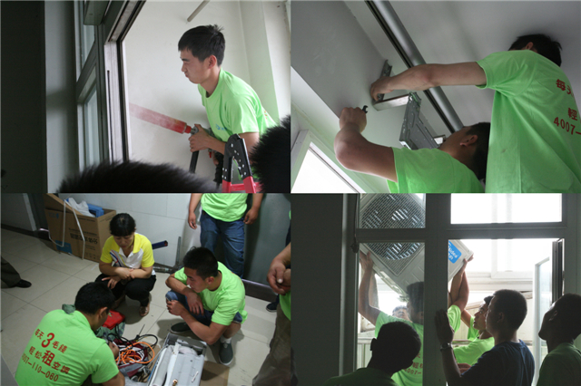 经过近2个小时的努力,研究生1号公寓1422房间的空调安装完毕。