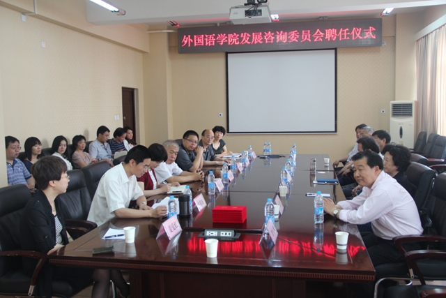外国语学院发展咨询委员会由来自北京大学、清华大学、北京外国语大学、北京师范大学等高校的7名知名学者组成,涵盖学院的英语、日语、德语和西班牙四个语种。陈大明书记对各位专家受聘我院发展咨询委员会委员表示衷心感谢。