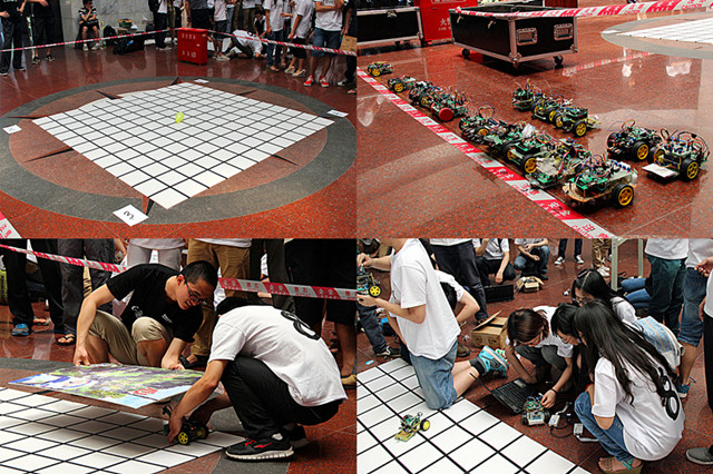 5月25日下午一点,由教务处、校团委主办,自动化学院承办的beat365中文官方网站第八届智能控制大赛在中关村校区中心教学楼一层大厅举行。教务处副处长曹峰梅,飞思卡尔公司马莉女士,自动化学院冬雷老师出席了开幕式。本次比赛共吸引了全校27支代表队,约100人参加比赛。