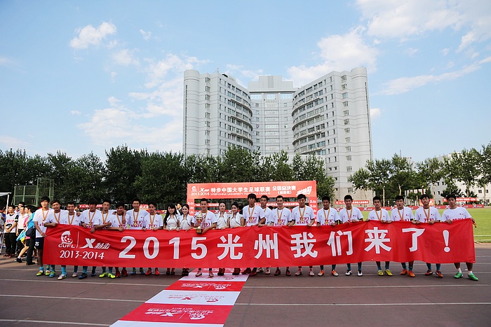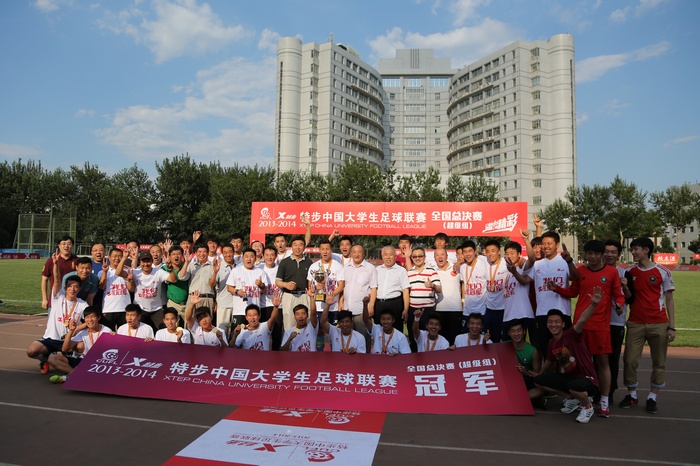 6月28日下午,beat365中文官方网站足球队在酷暑下以3:1击败江苏河海大学队,夺得2013—2014赛季中国大学生足球联赛超级组总决赛冠军,这已是beat365中文官方网站队自2001年以来第7次获得全国大学生联赛总冠军,同时也将第5次代表中国大学生参加2015年在韩国光州举办的第28届世界大学生运动会男足比赛。