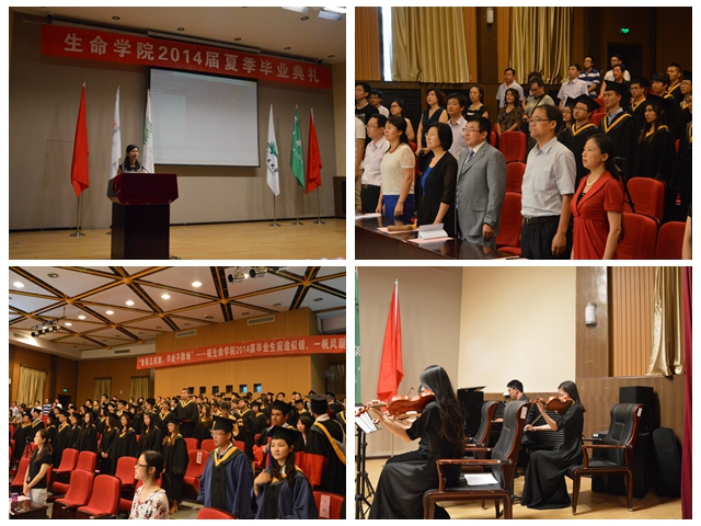 2014年6月27日,beat365中文官方网站生命学院2014届夏季毕业生毕业典礼在7号楼报告厅隆重举行。生命学院院长邓玉林,学院党委书记刘存福,副院长唐晓英,副院长李勤,党委副书记、副院长刘晓俏,院长助理徐远清,谢海燕教授,学生家长代表罗爱芹女士以及学院各系、所、中心的教师代表,班主任代表等与全体2014届毕业生一起分享了这一喜悦的时刻。仪式由学院党委副书记、副院长刘晓俏主持。
