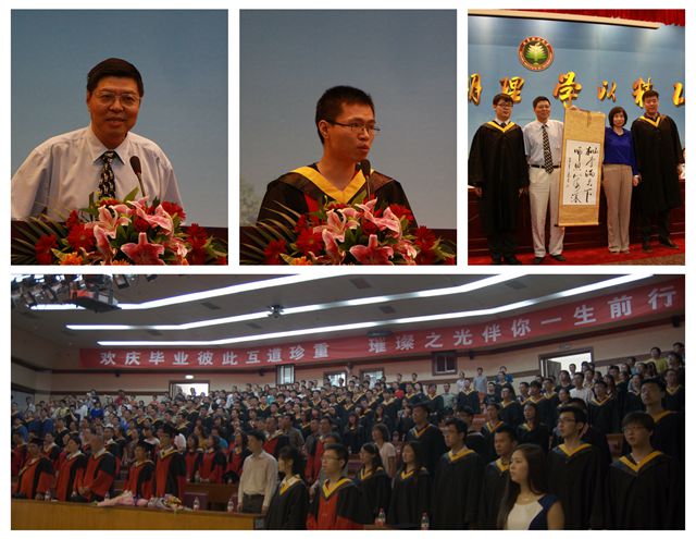 毕业生代表发言,回忆了在校期间学习和生活中的点点滴滴,言语之中表达了对母校、学院及师长们的深深眷恋与无限感激之情,表示将牢记母校恩师们的教诲,努力建功立业,为社会发展贡献力量。