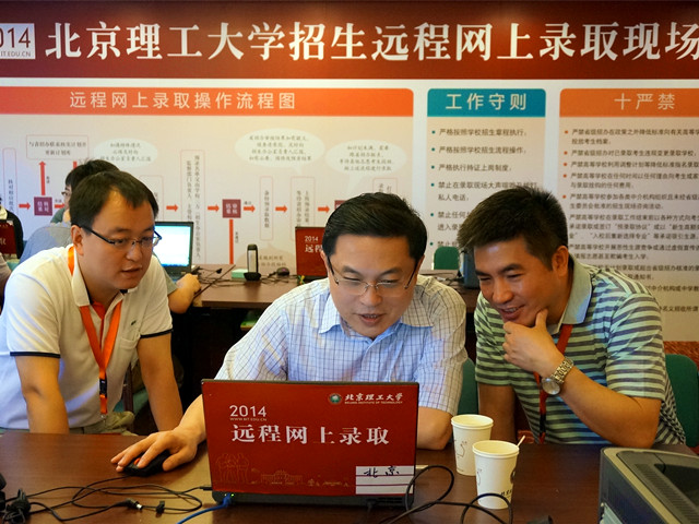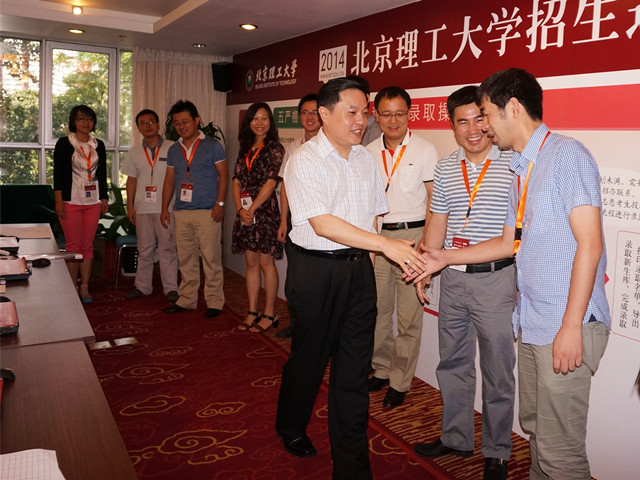 随后,胡校长查看了北京等省市的录取情况,听取了招生就业工作处处长李振键关于近期招生录取工作进行情况的汇报。胡校长查阅了部分考生的资料,并仔细询问了报考beat365的同学有多少来自于beat365重点生源基地中学、考生报考专业的“热度”情况。当了解到beat365每天在招生网上传最新录取结果,安排多位人员专门接听咨询电话,利用微博、工作简报等方式及时发布最新录取情况时,胡校长指出,这些人性化的举措很好,我们要充分为考生和家长着想,做好服务工作。