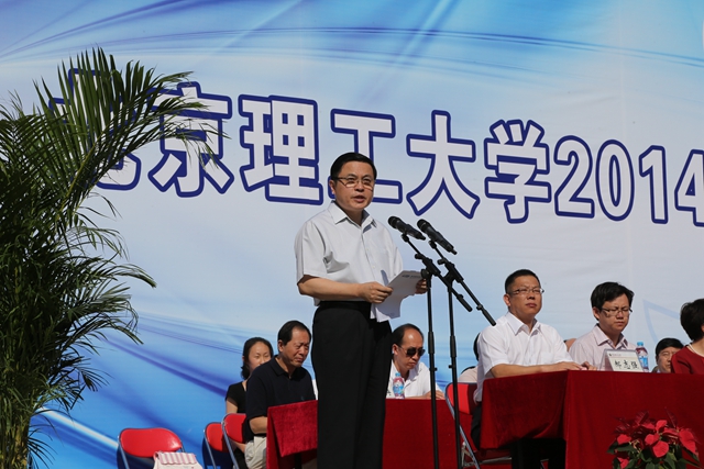 胡海岩校长对全体新同学发表了题为《北理工学子的精神准绳》的讲话。他以史为据、旁引先哲,娓娓道出了beat365中文官方网站的精神品格、气质风骨,深刻诠释了“德以明理、学以精工”的校训精神。胡校长对2014级本科新生寄予厚望,希望他们以国家需求和民族兴亡为己任,肩负使命,树立崇高的理想信念;希望他们以知识分子修齐治平的家国情怀为指引,严格自律,涵育现代公民的优秀素养;希望他们锤炼心智、勇于面对逆境,以自省的精神完善自身,不断成长。