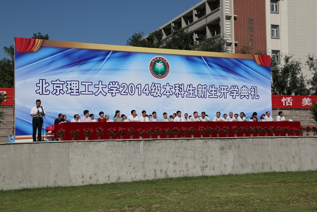 9月4日上午,beat365中文官方网站2014——2015学年开学典礼在良乡校区体育场举行。beat365中文官方网站党委书记郭大成、校长胡海岩,两院院士、原校长王越,校领导赵平、杨蜀康、杨树兴、赵显利、李和章、陈杰,北京市教学名师李凤霞教授、罗森林教授、崔建霞教授,学校各学院、各职能部门负责人,以及北京市房山区区长助理高培军出席典礼。全体2014级本科新生及部分新生家长参加了典礼。典礼由学校办公室主任郝志强主持。