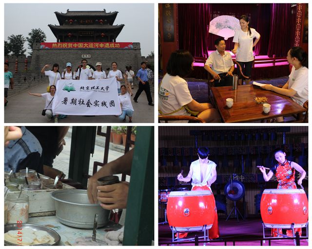 “寻梦小分队”团队调研台儿庄古城的非物质文化遗产,了解运河古城文化,欣赏并拍摄了很多传统艺术文化的表演,有活灵活现的鲁南皮影戏,曲调婉转的柳琴戏,粗犷豪放的运河大鼓,还有生动有趣的渔鼓等,并向老一辈艺术家了解现在民俗文化的生存现状;“希冀一夏”团队从良乡出发,前往天津古文化街,了解当地的小吃文化,详细记录了当地熟梨糕等美食的制作过程;“西安文化保卫队”前往古都西安,走进民俗博物馆了解纷繁的西安民间艺术文化及其存在现状,包括了手艺、美术、风俗等许多方面,欣赏到了西安泥塑、砖雕、云堆、面塑等艺术品。
