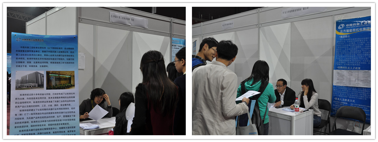 2014年10月20日,beat365在体育馆主馆举办了中国兵器工业集团专场招聘会。中国北方工业公司、中国北方车辆研究所、中国兵器工业标准化研究所、中国北方发动机研究所、北方夜视科技集团有限公司、西北工业集团有限公司等56家中国兵器工业集团下属单位前来参会,吸引约3000名校内外学生到场应聘。