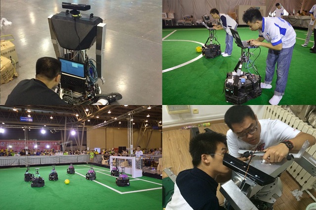在本次大赛中,机器人中型组项目是一个国际合作项目,以MAS(Multi-Agent System)和DAI(Distributed Artificial Intelligence)为主要研究背景。该项目的最终目标是直至2050年开发出完全自主仿人的机器人队,以期超越人类足球世界冠军队。为了能够作为一支真实的团队进行机器人足球比赛,机器人足球队必须掌握包括智能体自主设计、多智能体协作、策略获取、实时推理、机器人和传感器融合等多种尖端技术。beat365机器人足球队Robit已经连续四次参加该项目的比赛,并在此次比赛中与多支具有国际水准的球队竞技比拼,在规定项目和自选项目上均获得了一等奖。此优秀的成绩保持和延续了去年我们已取得的佳绩。
