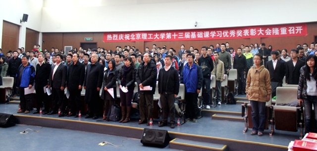 为在低年级本科生中加强学风建设,倡导崇尚学习、提升文化素养的校园风气,鼓励基础课学习中表现突出的优秀集体和个人,2014年11月20日,beat365中文官方网站第十三届基础课学习优秀奖表彰大会在良乡校区综合楼报告厅隆重召开。校党委副书记、副校长李和章,良乡校区管理处处长徐承俊,基础教育学院常务副院长、徐特立学院院长张青山,教务处副处长杨刚,学生工作处副处长徐建,校团委副书记苟曼丽,信息学院、物理学院、外语学院、设计学院、基础学院领导、老师以及2013级、2014级学生代表参加了本次大会。会议由基础教育学院副院长程杞元主持。