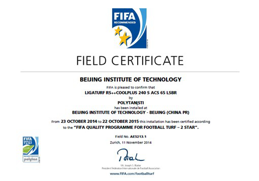北理工西操场足球场通过国际足联FIFA 2 STAR认证