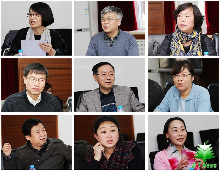 与会代表全国政协委员王涌天教授,北京市人大代表廖晓钟教授,北京市政协委员高利教授,海淀区人大代表张景瑞教授,北京市知联会理事牛振东教授,致公党代表邹炳锁教授、冯晶教授,无党派代表马永霞教授、姚裕贵教授等积极发言,他们结合自身在人大、政协以及教学、科研、社会服务等方面的履职情况,谈到了国家与社会的一些热点问题和重要发展方向,特别是围绕高等教育发展与学校的综合改革和十三五规划编制,大家给予了高度的关注和热烈讨论,就目前学校一些重点领域存在的问题和改革的方向,大家发表了各自的想法、思路和具体的意见建议。大家感谢学校提供的平台和对党外人士的重视与支持,衷心希望学校能在新的历史机遇下取得更大的发展。