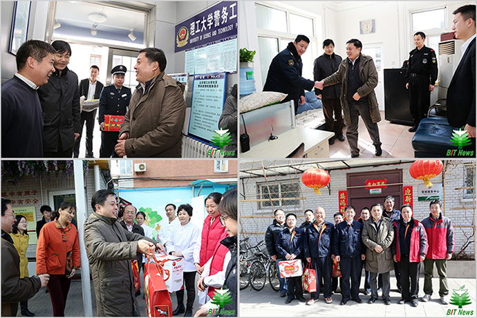 编辑:新闻中心 徐思军 阅读次数:伴随着暖意洋洋的北京冬日,寒假期间的北理工校园春意正浓,值此新春佳节,学校领导分别探望慰问了仍在一线工作的教职工和春节留校学生。