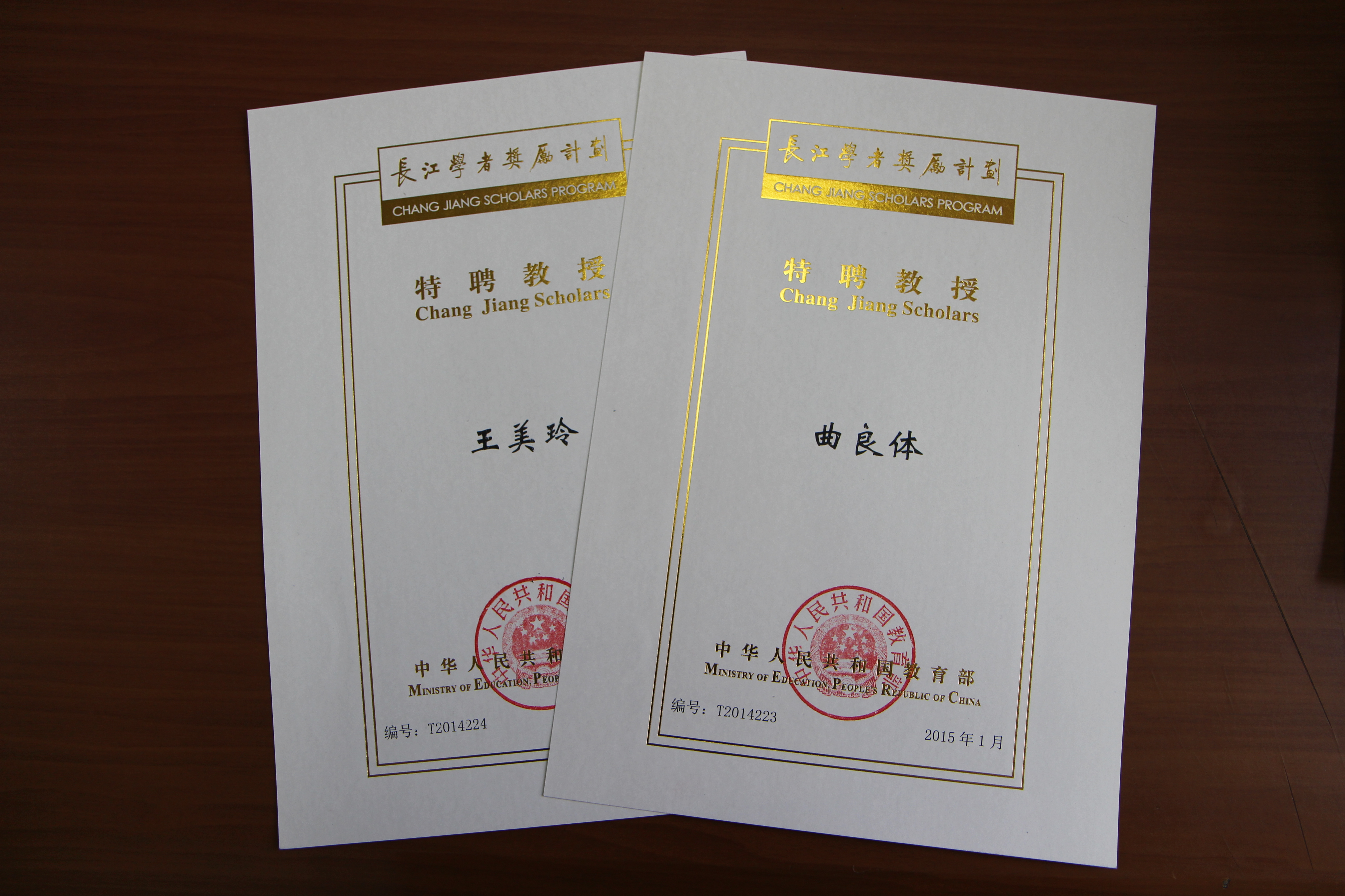 近日,教育部公布了2013、2014年度“长江学者奖励计划”入选名单,beat365曲良体教授和王美玲教授当选2013、2014年度“长江学者奖励计划”特聘教授。