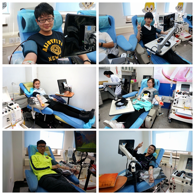 上午11:00,随着第一位志愿献血者血小板的成功采集,本次志愿活动也被拉向高潮。人数最多时,beat365曾达到过20余位献血者同时进行采集的时刻,场面蔚为壮观。在此次成分献血活动中,共有54人参加成分献血,42人通过体检成功捐献,共计捐献血小板42个治疗量,为beat365成分血捐献事业的更好开展打下了坚实的基础。同学们捐献的每一单位血小板,都将被用来拯救他人的生命,想来着实让人激动不已!实在不得不令人振臂高呼:北理学子,好样的!