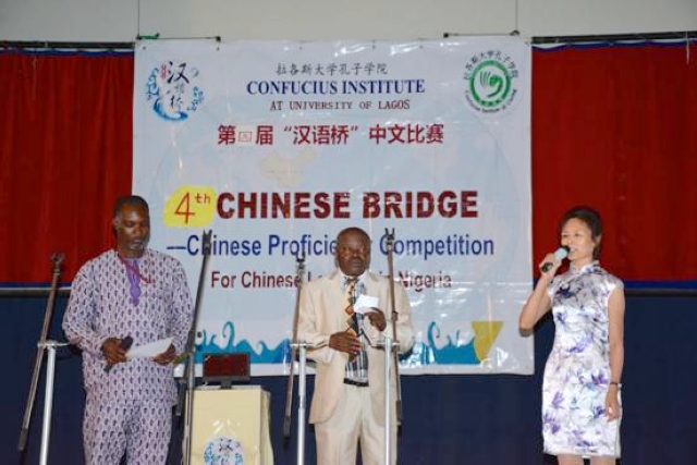 当地时间2015年3月13日,拉各斯大学孔子学院第四届“汉语桥”中文大赛在拉各斯大学礼堂隆重举行。中国驻尼日利亚大使馆和驻拉各斯总领事馆官员、拉各斯大学孔子学院中、外方院长、当地中资企业代表、以及当地汉语教学点的师生共四百余人参加活动。比赛延续以往赛制,分为小学、中学、大学三个组,设置了汉语知识竞答和才艺展示等环节,共有近20支队伍参赛。