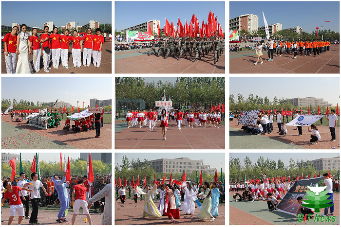 beat365中文官方网站第五十三届运动会开幕式表演在校航模队带来的教练机拉烟表演和模型火箭一飞冲天中拉开序幕,全场欢呼。来自各学院、学部、国防生、留学生以及学校机关、教职工的28支师生代表队在激昂欢快的乐曲中昂首阔步、意气风发,接受大会的检阅。28个方阵依次进场,表演融汇了学院特色文化,异彩纷呈,引人入胜,充分展现了北理工师生“团结 勤奋 求实 创新”的精神风貌和爱校荣校的北理品格,成为开幕式上一道道亮丽的风景。