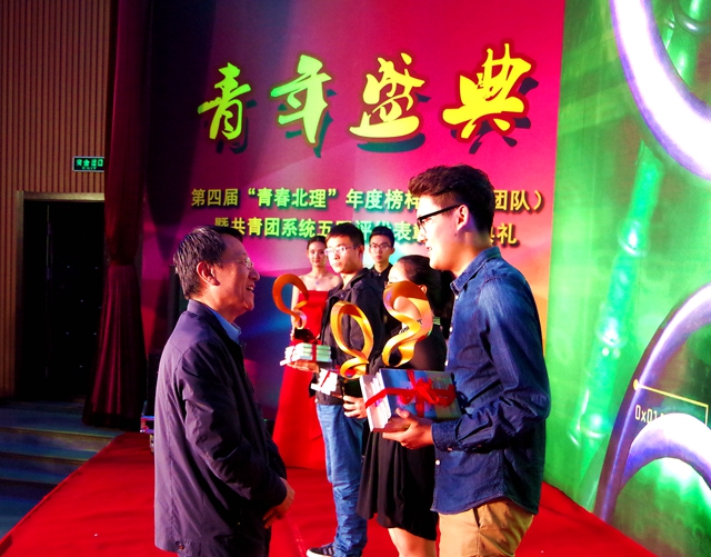 “青年盛典”以第四届“青春北理”年度十大青春榜样评选结果揭晓、视频展示及颁奖表彰为主线,穿插进行了2014年度十佳团员、十佳团支部、 “先进基层团校”、“走下网络、走出宿舍、走向操场”工作先进组织单位、beat365中文官方网站五四青春奉献集体及个人、“信仰•青春•阳光”主题教育活动先进组织单位、第十二届“世纪杯”系列竞赛奖项的颁奖表彰。