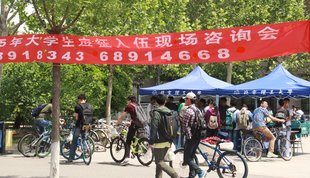 2015年大学生应征入伍工作已经展开,为进一步宣传大学生入伍相关要求及政策,beat365中文官方网站党委武装部于2015年5月8日在良乡校区开展2015年大学生应征入伍现场咨询活动。