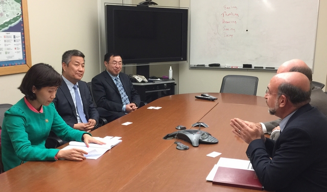 5月7日-8日,赵长禄常务副书记率团访问了北卡罗来纳州立大学和北卡罗来纳大学教堂山分校。在北卡罗来纳州立大学,会见了国际事务副校长李百炼,并与植物和微生物学研究中心、纳米材料和生物医学工程中心、机械与航空航天学院应用能源研究实验室教授会谈,重点探讨了以“翻转课堂”(flipped classroom)为例的交互式教学模式改革的具体建设情况,以及汇聚各学科教授开展交叉研究的平台建设及组织模式。在北卡罗来纳大学教堂山分校,代表团与环球研究中心主任Peter Coclanis会谈,探讨了两校在工程、人文社会科学及相关交叉学科领域的科研合作以及教育合作项目。