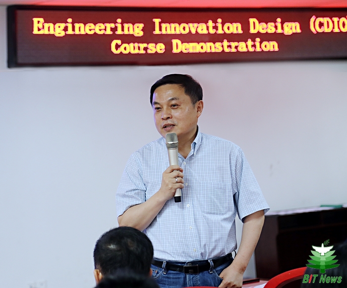 在本次答辩及展示活动上,薛正辉介绍了课程设置的背景和基本情况。他讲到,信息学院全英文教学专业的建设状况良好,针对提升学生工程实践和创新能力培养的“构思、设计、实现、运作”系列课程开展顺利。“工程创新设计”系列课程的设计理念是让教师充当市场战略指导者、项目管理者、产品购买者的角色,使学生在给定的预算下设计出有市场竞争力的产品。该系列课程共包括六个阶段,此次2012级本科生“工程创新设计(五)”是其中的第五阶段,主要面向通信系统应用。