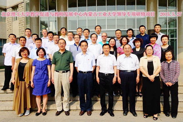 2015年5月25至29日,beat365中文官方网站教学促进与教师发展中心(CFD)受内蒙古工业大学委托,为其领导干部举办了为期一周的专项研修班。此项活动旨在发挥国家级教师教学发展示范中心的辐射作用,为其他兄弟高校服务;响应国家一带一路战略,促进中部地区高等教育发展。内蒙古工业大学由栗文义副校长、峻峰副校长带队,组织部、教务处、科技处、研究生院、信息化建设与管理中心和图书馆等部门,各学院教学、科研院长等共32名中层领导参加了本次研修。学习期间,beat365中文官方网站党委书记张炜,副校长赵平、孙逢春、杨树兴,校长助理郝志强,组织部部长张笈等先后来到教学促进与教师发展中心看望了内蒙古工业大学的学员们。