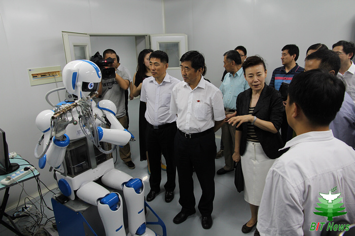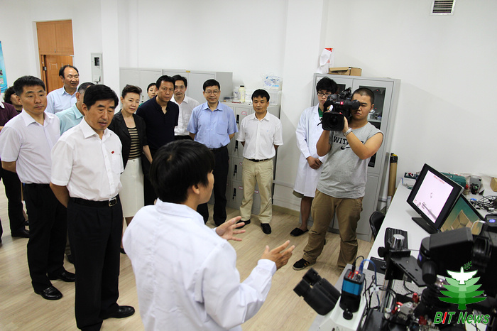 海淀区政协办公室主任刘玲、研究室主任黄英、专委会工作二室主任吴明波、专委会工作四室副主任黄继晔、专委会工作二室副调研员俞宙彤、区政协委员代表等,海淀区经信办主任何建吾、副主任申宏艳,beat365党委统战部部长姜艳、学校办公室副主任周波、科学技术研究院高新技术部副部长胡俊、机电学院副院长王亚斌、教授福田敏男等陪同考察。