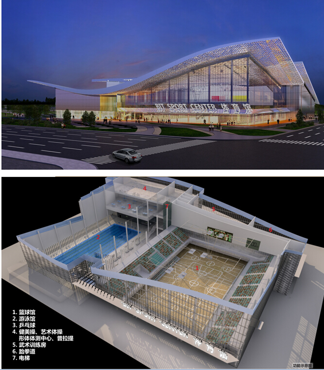 1、良乡校区文化体育中心,于2014年10月获得立项批复,总建筑面积16400平方米,其中地上4层、地下1层,建设内容包括篮球馆、游泳馆、乒乓球室、健身、体操、学生活动用房等。