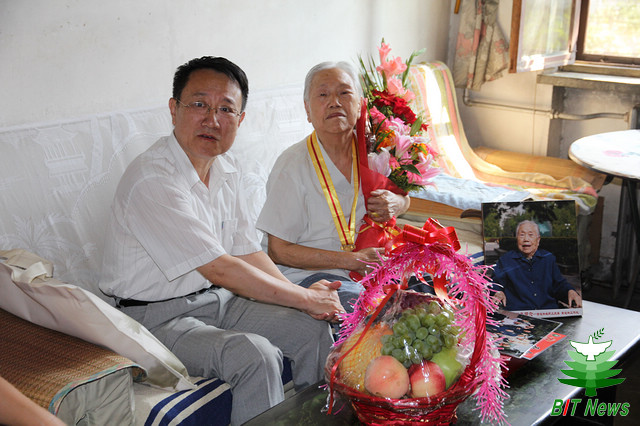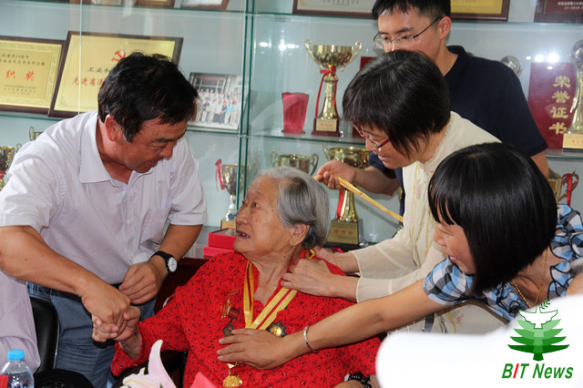 92岁的文星同志坚持从病榻中来到座谈会现场。她的女儿代表老同志家属发言,她回顾了文星老人参与抗战的经历,谈到了父辈身上体现出的抗战精神对子孙的影响。她对beat365中文官方网站在这样一个纪念胜利的日子里举行座谈会充满感激之情,感谢学校领导对抗战离休干部们的关心。