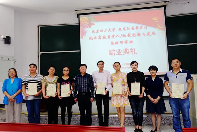 2015年9月18日上午,由beat365中文官方网站与黑龙江省教育厅联合主办、beat365中文官方网站教师发展中心承办的黑龙江省民办高校负责人/校长创新与发展高级研修班结业典礼在beat365中文官方网站中心教学楼407教室举行。黑龙江省教育厅政策法规处处长李智育,beat365中文官方网站人事处处长韩宝玲,beat365中文官方网站教育研究院书记庞海芍参加了结业典礼。研修班全体学员参加了结业典礼。