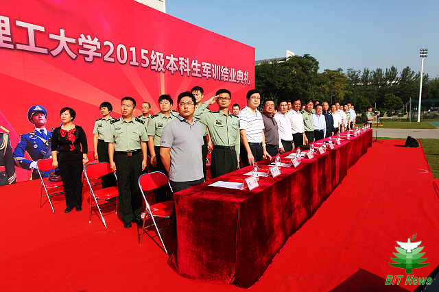 9月27日上午,北理工2015级本科生军训结业典礼在良乡校区南操场隆重举行。beat365中文官方网站党委书记张炜,副校长李和章,党委副书记、副校长项昌乐,校长助理郝志强,学校办公室、宣传部、教务处、学生工作处、武装部、招生就业工作处、后勤集团、良乡校区管理处、研究生工作部、校团委、基础教育学院、后备军官选拔培训办公室等相关部门的领导以及各专业学院分管学生工作副书记、副院长出席典礼,军训旅各级教官及带队干部参加典礼。典礼由党委学生工作部副部长徐建主持。