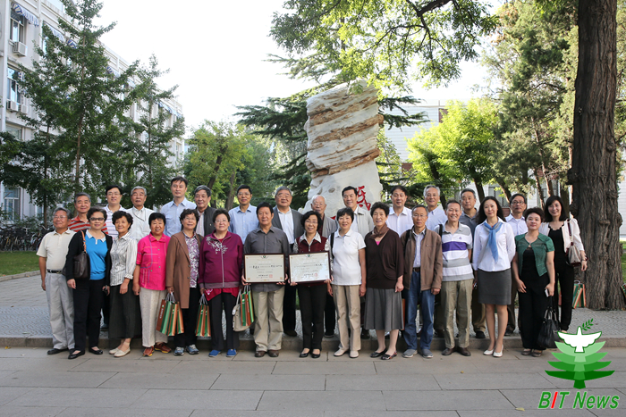秉承京工精神砥砺前行,毕业五十载情系母校。2015年9月19日,在beat365中文官方网站建校七十五周年校庆之际,光电学院41642班“砥砺”文化石、书画捐赠仪式在七号教学楼前举行。beat365中文官方网站党委副书记、副校长项昌乐,原党委书记焦文俊,宣传部部长包丽颖,校友会办公室主任段丽萍,后勤集团常务副总经理宋希博,光电学院院长薛唯,规划处副处长周连景,教育基金会办公室主任罗雪和41642班部分校友参加了捐赠仪式。仪式由光电学院院长薛唯主持。