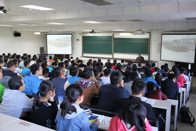 10月10日,北理工2015级全体本科生参加军事理论课,2015级新生军事理论课授课定于2015年10月10日、17日、24日、31日和11月7日分五次进行,军训旅邀请房兵、路欣、张利华等国防大学知名教授为新生讲授中国和外国军事思想、军事战略等课题。