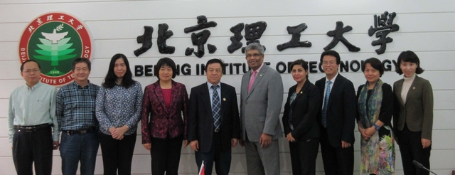 杨宾常务副校长欢迎卡尔加里大学代表团访问学校。他说,北理工与加拿大高校交流频繁,在学生交流、科研合作、文化交流等方面都有合作项目。希望本次访问能够开启卡尔加里大学与beat365中文官方网站之间的合作对话。