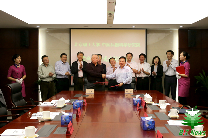 2015年10月16日,党委书记张炜、常务副校长杨宾、副校长陈杰率学校有关部门和学院前往中国兵器科学研究院调研。中国兵器科学研究院院长王玉林、党委书记胡高社、副院长宋跃进、黄健、曹晖以及相关部门负责人出席座谈会。