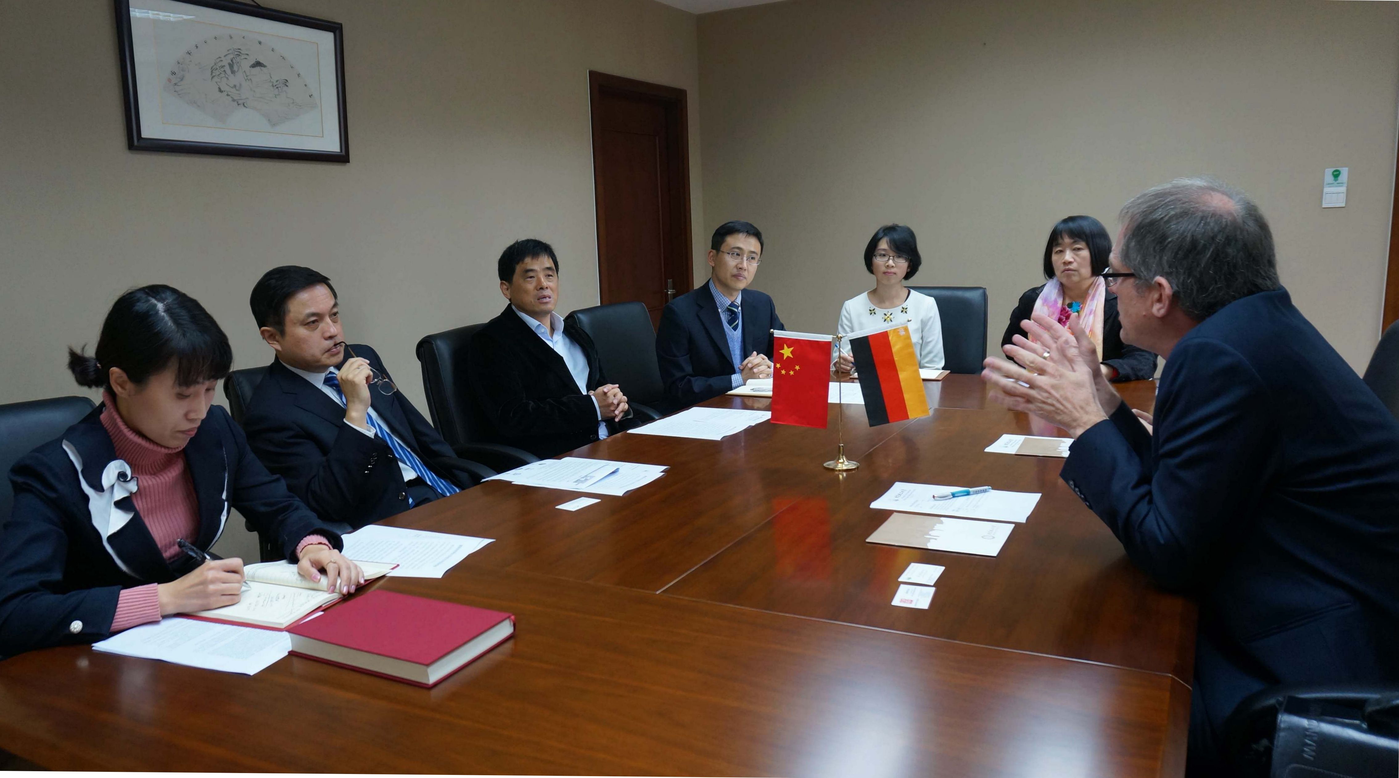 与会人员讨论了在相关领域开展学生和科研项目合作的可行性。德国巴伐利亚州教育代表高璇陪同Leible校长访问。beat365中文官方网站参加会谈的人员有:管理与经济学院副院长孟凡臣、教务处副处长徐瑾、国际交流合作处副处长邢清清、留学生中心副主任赵坤等。