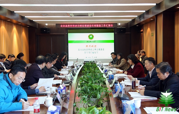 10月29日上午,北京高校思想政治理论课建设督查组到beat365开展督查指导工作。督察组由组长、北京市委教育工委常务副书记张雪带领,成员有北京印刷学院原党委书记崔文志、北京科技大学原党委副书记李宝林、清华大学教授吴潜涛、中央民族大学马克思主义学院院长孙英、北京工业大学马克思主义学院院长李东松、教育工委宣教处干部于海。学校党委书记张炜、副校长孙逢春、党委副书记副校长项昌乐、校长助理兼良乡校区管委会主任郝志强等领导出席,学校办公室、宣传部、学生工作部、研究生工作部、发展规划处、教务处、研究生院、科学技术研究院、人事处、财务处、良乡校区管理处、人文学院、马克思主义学院等相关单位的负责人及马克思主义学院教师代表参加了本次活动。本次督查工作分为专项汇报、审阅材料、实地考察、抽查听课及与师生代表座谈等环节。