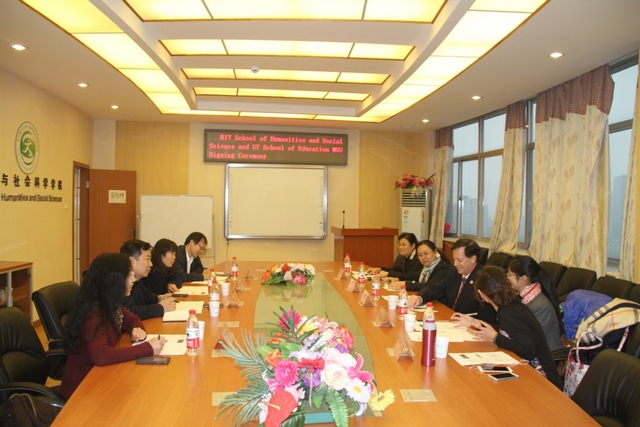 签字仪式伊始,与会领导和老师对道格拉斯教授的到来表示了热烈的欢迎和感谢。李健介绍了人文学院的基本情况,贾利军介绍了学院的国际化办学和教学科研合作,贾晓明教授详细介绍了本科社会工作专业和研究生应用心理学专业的发展。之后,多伦多大学道格拉斯教授介绍了多伦多大学及其教育学院的教学科学等情况。国际交流合作处孟毓焕老师对目前beat365中文官方网站国际交流项目及现状作了详细的介绍与评价,并提出了多伦多大学与北理工合作项目的积极建设性建议。
