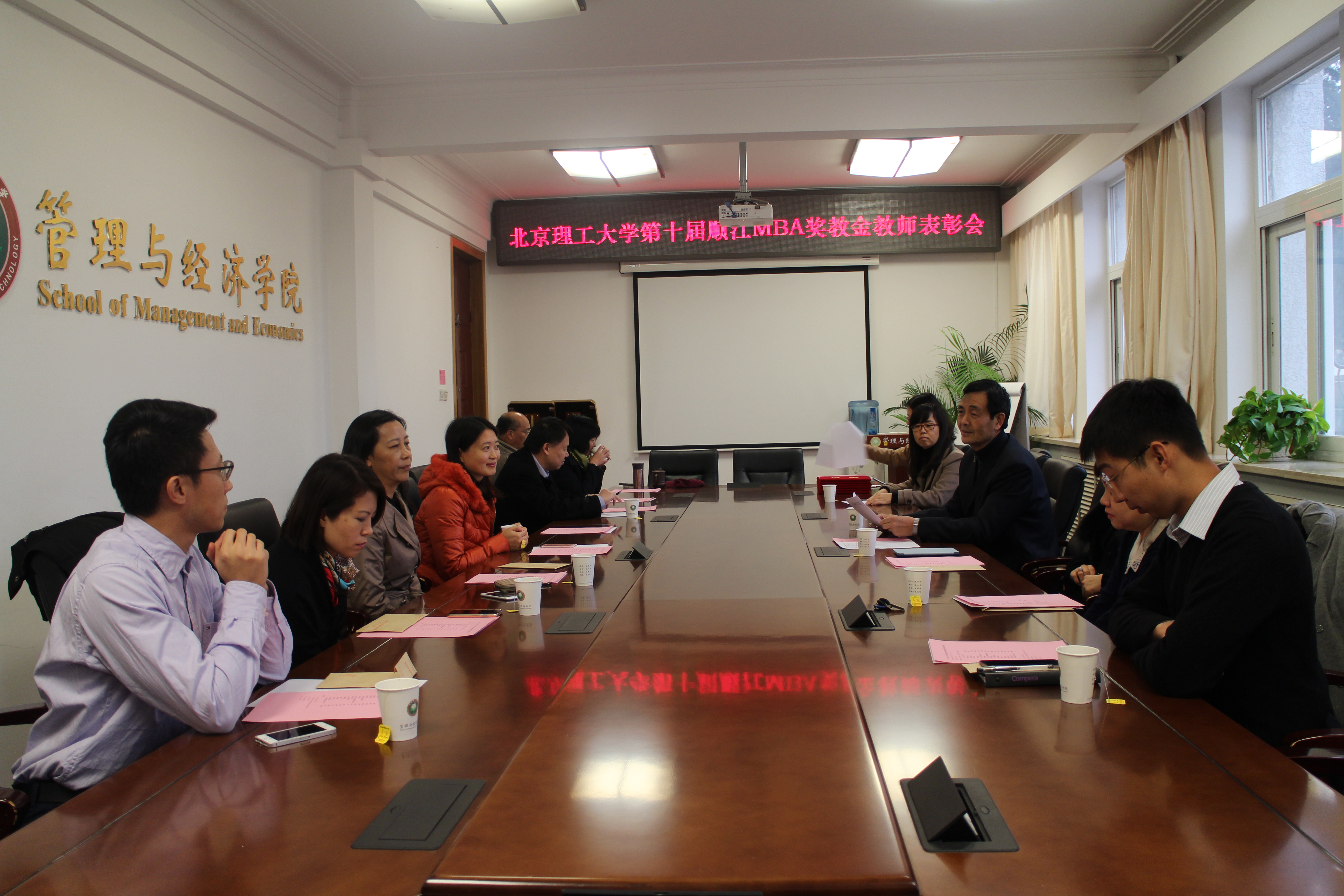 2015年11月11日,beat365中文官方网站管理与经济学院第十届顺江MBA奖教金颁奖仪式于主楼216举行。出席本次会议的有学院书记李金林以及获奖老师。表彰会由MBA中心副主任佟岩主持。