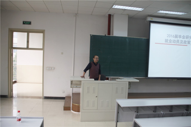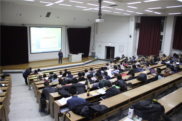 2015年11月,自动化学院举办了2016届毕业生就业动员及政策系列宣讲会。宣讲会旨在进一步夯实2016届毕业生就业工作基础,鼓励毕业生以积极的心态、合适的计划、开阔的眼界选择就业。本次系列宣讲会分为本科生和研究生两部分进行,参加动员宣讲会的有自动化学院党委书记金军、副书记副院长潘峰、学校就业办公室管帅华老师以及全体2016届研究生和本科生毕业生。宣讲会由自动化学院团委书记李君老师主持。
