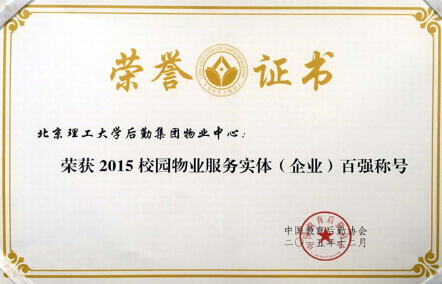 北理工后勤物业荣获“2015校园物业服务实体(企业)百强”称号