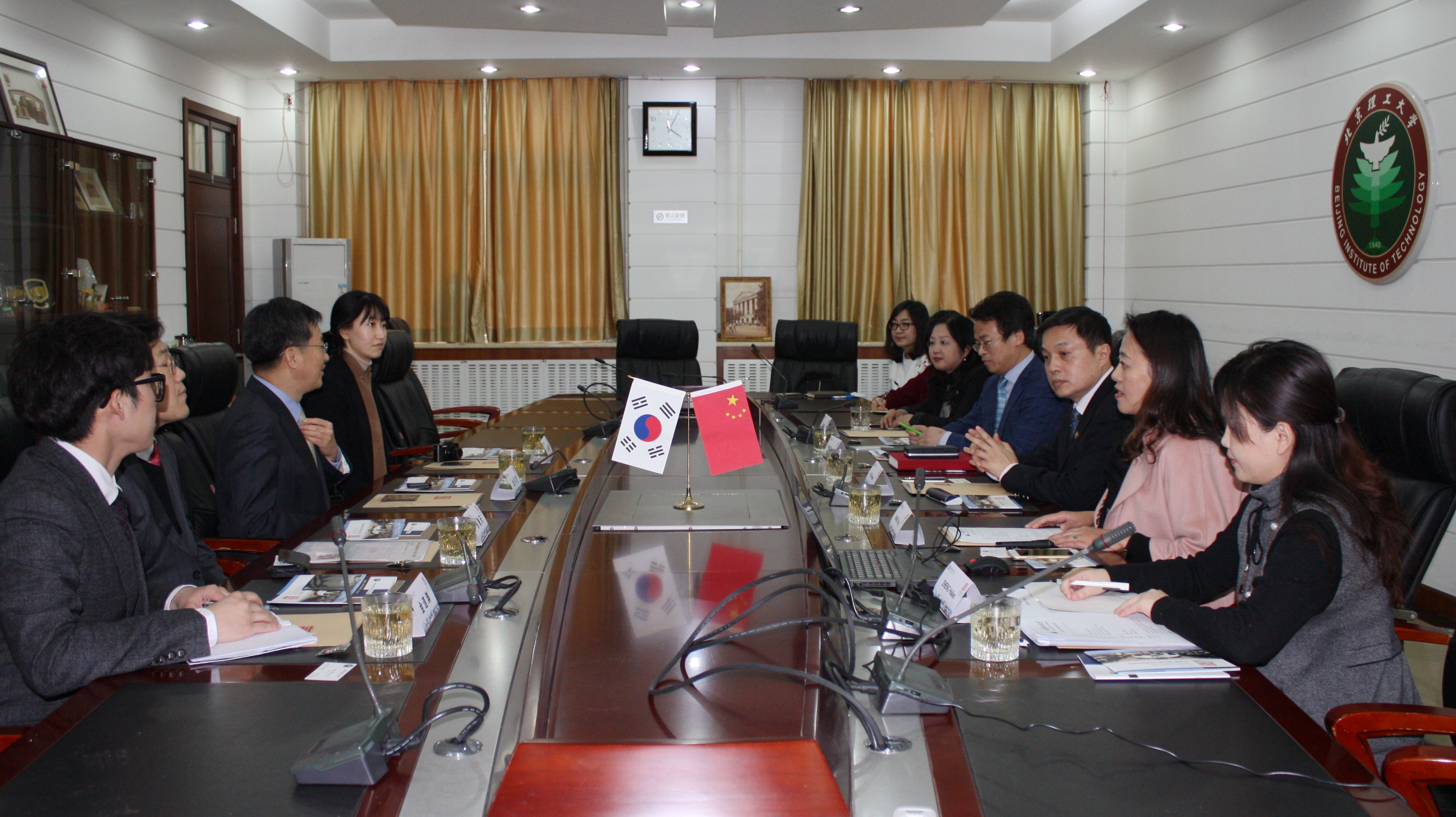 2016年1月20日下午,韩国亚洲大学校长金东兗一行四人访问beat365中文官方网站,校长胡海岩在2号办公楼133会议室会见了客人。