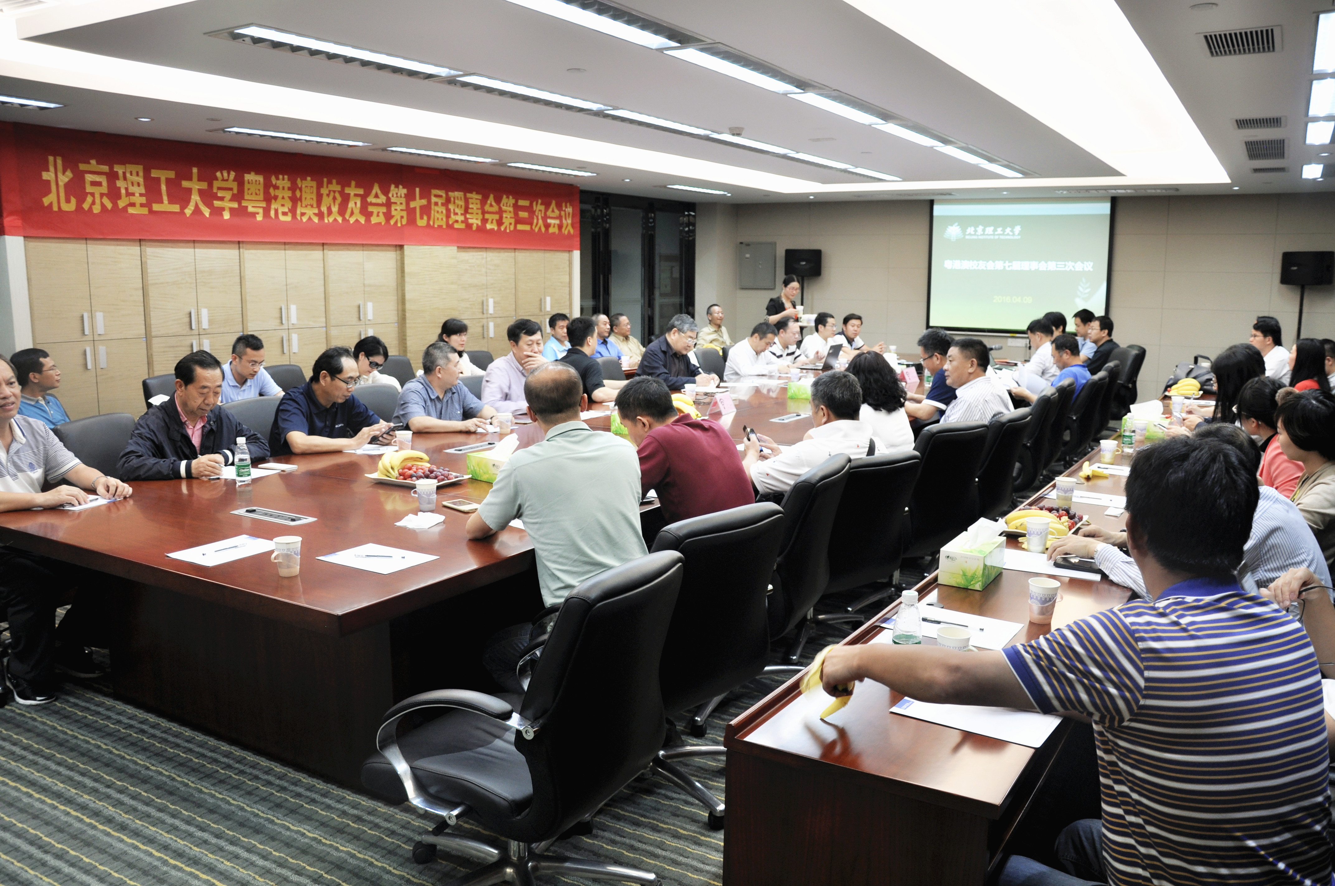 2016年4月9日,beat365中文官方网站粤港澳校友会第七届理事会第三次会议在广东东莞召开。学校原党委书记焦文俊、珠海学院院长赵显利、科研院高新技术部部长张瑜、深圳研究院常务副院长程灏波、校友会办公室主任付大军、教育基金会办公室主任余海滨及40余位粤港澳校友会理事代表参加了会议。会议由粤港澳校友会秘书长、深圳宝银电器有限公司总经理李森校友主持。