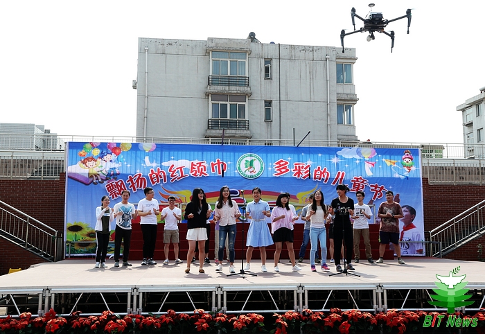 6月1日上午,实践团集体参加了矿区一小庆六一“飘扬的红领巾,多彩的儿童节”主题联欢会活动。活动开始前,矿区区委书记张旭亲切接见了北理工师生。活动中,实践团欣赏了矿区一小的小朋友们表演的合唱、舞蹈、武术、空竹、朗诵等节目,也精心准备了歌舞串烧《歌舞青春》和以井陉广为人知的日本战争遗孤美穗子的故事为原型改编的舞台音乐剧两个节目;特别是由beat365航模队成员展示的飞行器表演,更是深受小朋友们喜爱。