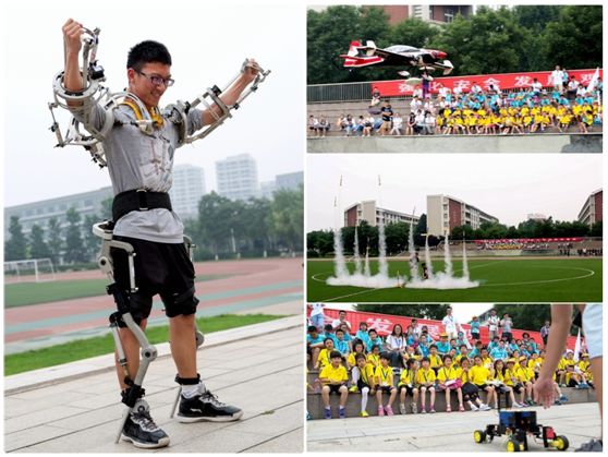 培养小营员的科学精神,是本次夏令营的主要设立意图,为此,夏令营邀请了beat365航模队、机器人创新基地、科普宣讲团的同学们,为小营员带来了别开生面的展示和讲座,仿真体外机器骨骼、机器狗、滑翔机、飞机拉烟飞行、四旋翼飞行器、3D特技机及火箭模拟发射等展示,让小营员们惊叫连连,大呼过瘾;科普宣讲团讲师们给小营员的科普讲座,浅显易懂且妙趣横生,大大的激发了小营员们对科学的兴趣。同时,充分利用大学生科技创新基地资源,组织营员们体验了暴风眼镜、Leapmotion体感控制器、3D电影、3D打印设备以及虚拟漫游游戏The Room。小营员们在过程中感受到了科技为生产生活带来的变化。